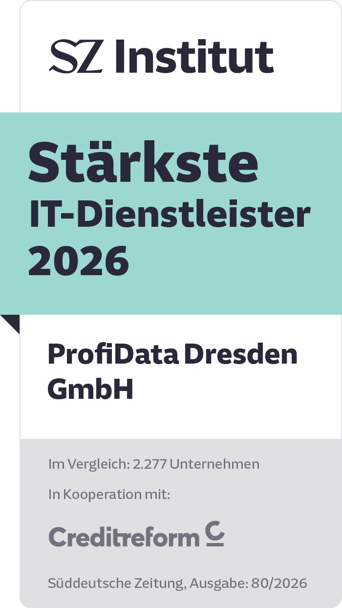 Ausgezeichnet als Stärkster IT-Dienstleister 2026 – zertifiziert vom SZ Institut in Kooperation mit Creditreform.